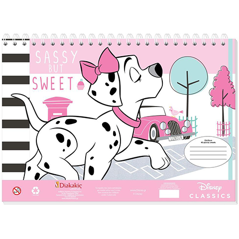 A Disney 101 kiskutya mesefilmje nem éppen mai darab, azonban a mai napig elképesztően népszerű a gyerekek körében, így egy ilyen cuki, dalmatás vázlatfüzetbe egészen biztos, hogy örömmel fognak rajzolgatni. A 23x33 centiméteres sima lapokat spirálos megoldással fűzték össze, így bármikor ki lehet belőle tépni egy lapot, aminek nyoma sem marad. A harminchét sima lap mellett találni két oldalt, ami a mesehősöket ábrázolja, de a gyerekek feladata kiszínezni. A negyvenedik oldal egy ív ami több mint egy tucat matricát tartalmaz, melyek a mese legnépszerűbb szereplőit ábrázolják.