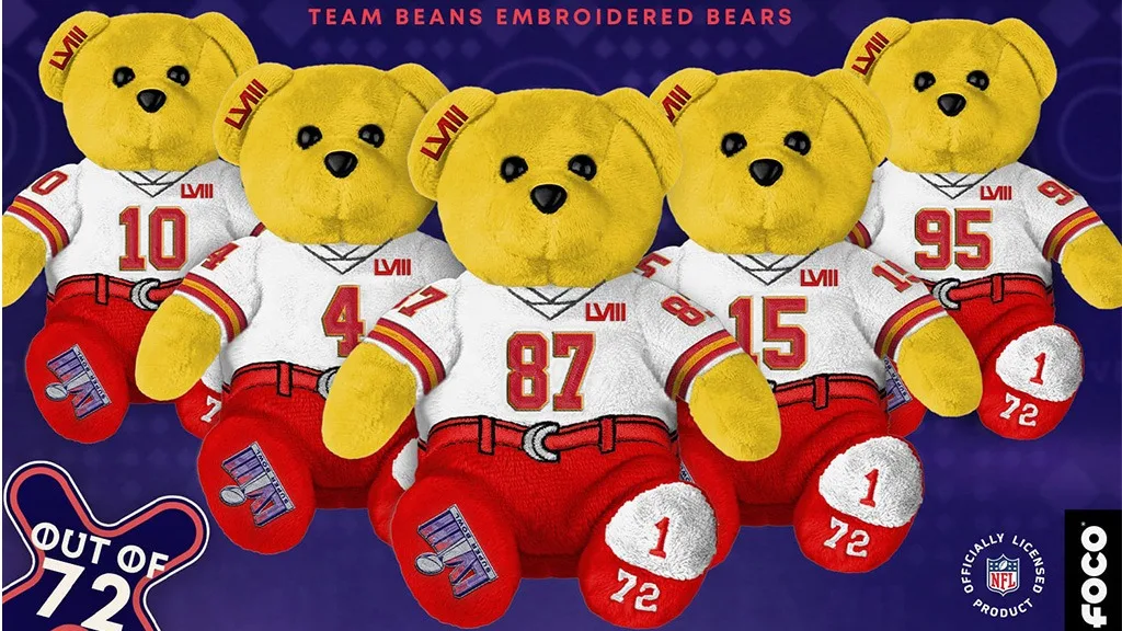 Gyűjtsd össze a Super Bowl 58-ra hivatalosan licencelt macikat! Válassz a San Francisco 49ers és a Kansas City Chiefs csapatok legjobb játékosai által inspirált macik közül.