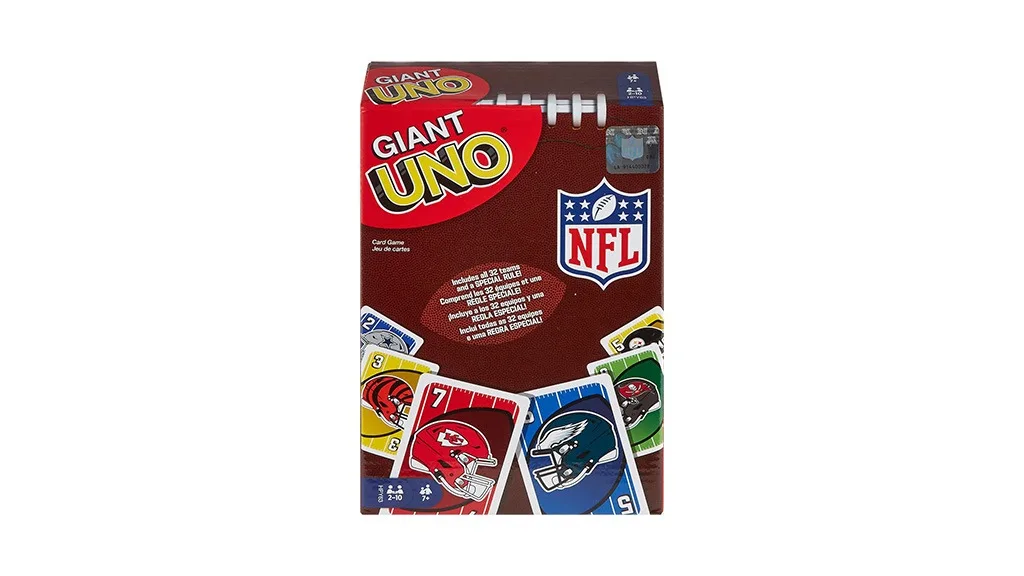 Ez a klasszikus UNO játék óriási, túlméretezett kártyákkal játszható, amelyeken az NFL csapatok képei szerepelnek. A különleges Ice the Kicker szabály arra kényszeríti a játékosokat, hogy rúgjanak egy mezőnygólt egy hajtogatott papírfocival egy másik játékos kezei által képzett kapun keresztül.