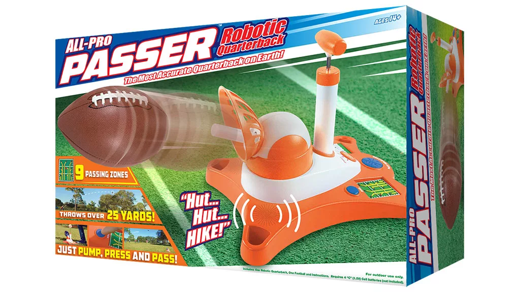Az All-Pro Passer úgy van programozva, hogy pontos futball spirálokat dobjon, mint egy irányító. Kilenc különböző passzolási zónával rendelkezik, hogy több mint 25 yardra indítsa a labdát. A gyerekek kiválaszthatják a játékukat, és megnyomhatják a hike, slant, post, short vagy long gombokat. A játékosok egyedül vagy másokkal együtt is gyakorolhatnak.