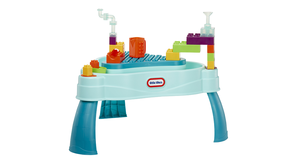 A gyerekek fejleszthetik a finommotoros készségeiket, a kéz-szem koordinációjukat, és a szociális készségeiket is, miközben ezzel a vízi asztallal játszanak. A vízi asztal tartalmaz "golyópálya csúszdákat" forgókkal, egy lapátot, egy vödröt, egy golyókilövőt, állatfigurás spriccelőket, és golyókat. Mindkét oldal 1,8 gallon vizet képes befogadni.