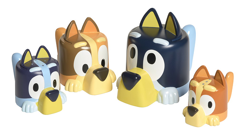A gyerekek izgatottan várhatják a fürdőidőt a Bluey-inspirálta poharakkal, amelyeket egymásra rakhatnak, egymásba helyezhetnek és önthetnek. Az könnyen megfogható öntőpoharak egy extra szóró funkcióval is rendelkeznek.