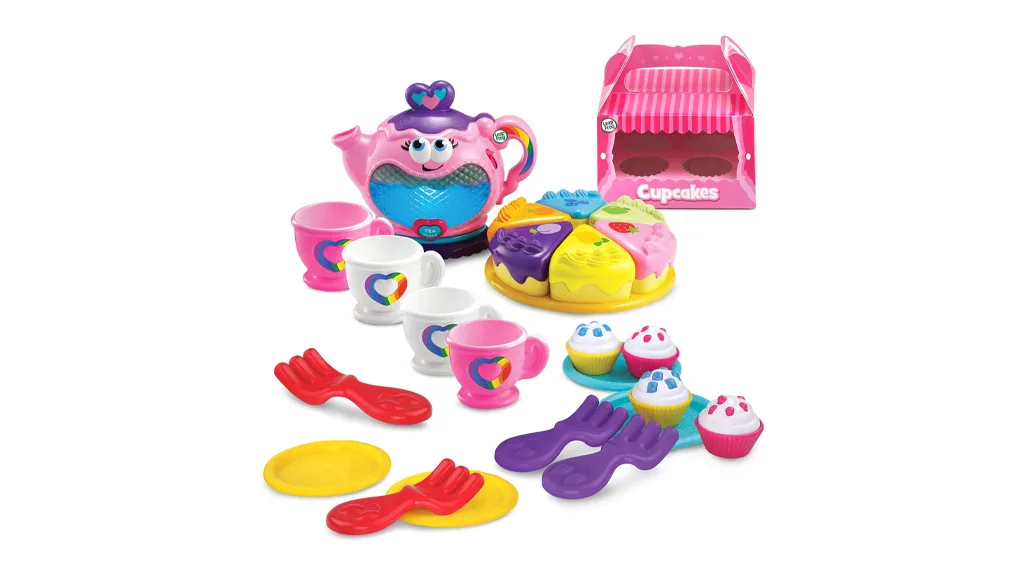 Rendezz egy zenével teli képzeletbeli teadélutánt! Ez a 25 darabos készlet tartalmaz egy teáskannát, négy teáscsésze, villákat, tányérokat, négy cupcake-et, egy cupcake dobozt, hat szelet műanyag tortát és egy tortatálat. A teáskanna különböző dalokat játszik, ahogy a gyerekek játszanak.