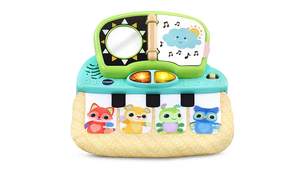 Ez a három-az-egyben készlet leköti a babákat, miközben építik az izomerejüket. Amikor a babák megtanulnak ülni, felfedezhetik a zongorát azáltal, hogy megnyomják a billentyűket és lapoznak, hogy dalokat és szavakat halljanak. Amikor a babák elkezdenek járni, használhatják a fogantyút, hogy magukkal vigyék a zongorát.
