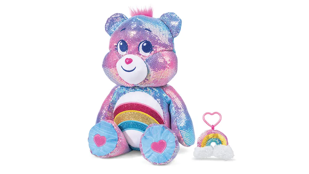 Ez a limitált kiadású, közepes méretű plüssfigura csillogó szivárványos pocakjelvényt és szivárványos flittereket visel. A gyerekek ölelkezhetnek ezzel a csillogó plüss baráttal, és terjeszthetik annak üzenetét az örömről.