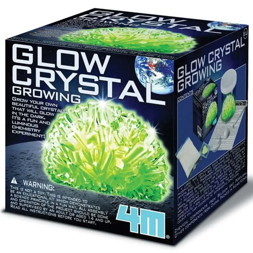 A 4M világító kristálynövesztő készlettel igazi tudományos kalandban lehet részed, miközben saját, foszforeszkáló kristályokat növesztesz! Figyeld meg a varázslatos folyamatot, ahogy a kristályok apránként formálódnak és egyre nagyobbá válnak. A különleges porok és a kristályképző anyag összekeverésével egy kémiai reakció indul el, amelynek eredményeként gyönyörű, sötétben világító kristályok jönnek létre. Amikor a kristályok elérték végleges formájukat, egy átlátszó tartóba helyezheted őket, így megóvhatod és ki is állíthatod őket. Ezek a különleges kristályok nemcsak tudományos érdekességek, hanem tökéletes díszei lehetnek az íróasztalodnak vagy a polcodnak is! A készlet mindent tartalmaz, amire szükséged lehet, beleértve a részletes használati utasítást is, hogy biztosan sikerrel járj a kísérlet során.