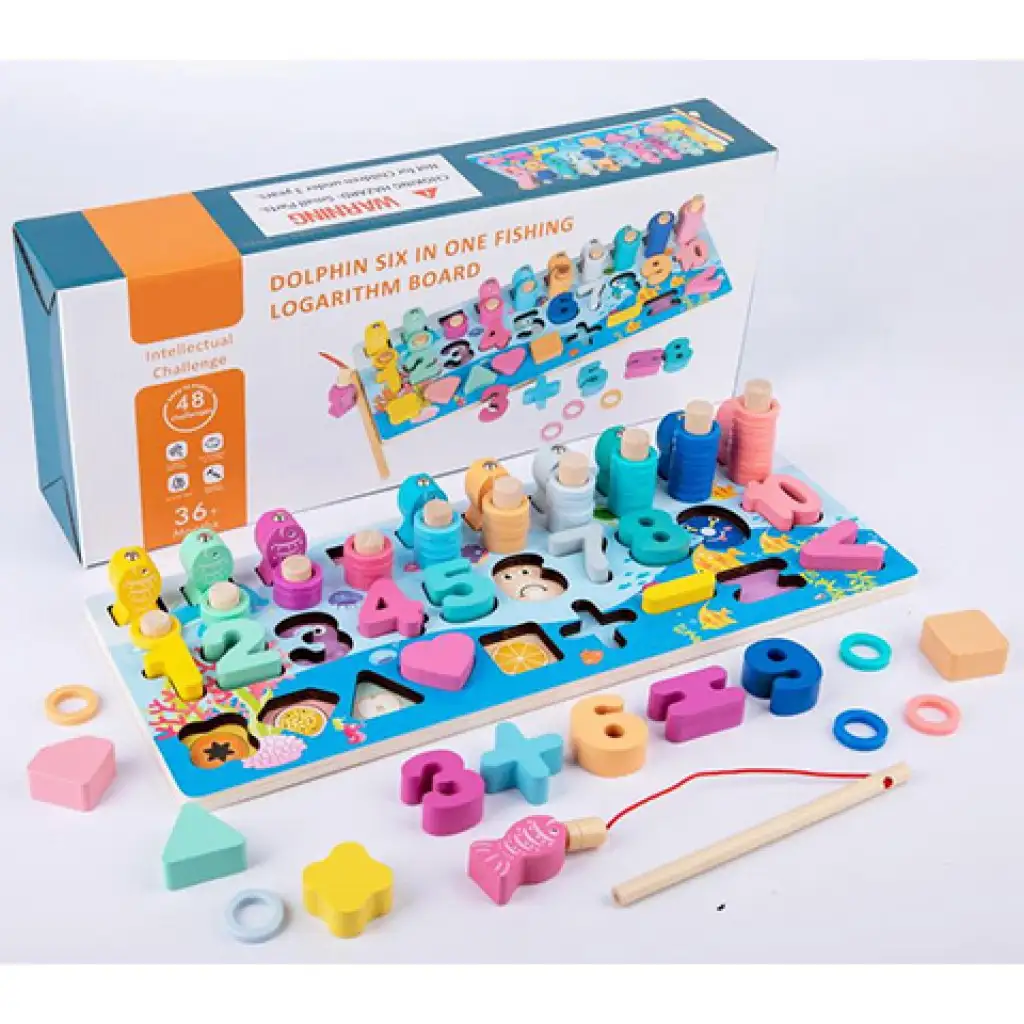 - 6 az 1-ben színes fa készségfejlesztő játék számokkal és formákkal