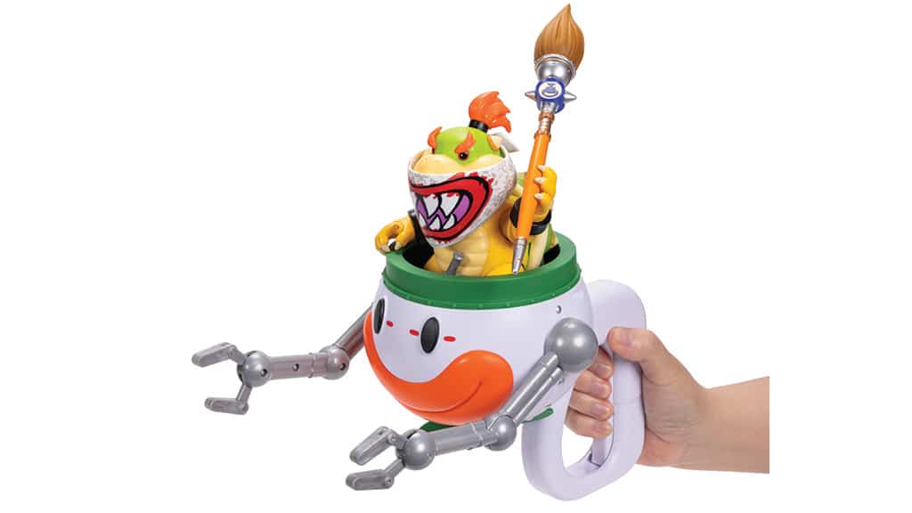 Dobd fel a játékot ezzel a Bowser Jr. akciófigurával! Ez a kis rém most vadonatúj maszkot visel, és a híres Clown Car-jában száguldozik, amely forgó propellerrel, levehető fogantyúval és gombnyomásra mozgó ütőkarokkal van felszerelve. A szett tartalmaz még egy vízzel előhívható matricákat tartalmazó ívet, valamint egy habfestő ecsetet is, hogy még kreatívabb legyen a játékélmény. Ez a különleges kiadás minden Super Mario rajongó számára izgalmas és szórakoztató kiegészítő lehet a gyűjteményben!
