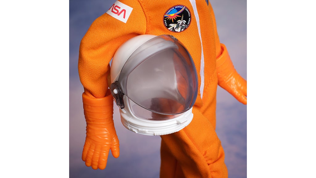 A baba narancssárga űrruhát visel, amelyen küldetésjelvények találhatók. Ez a részlet még élethűbbé és különlegesebbé teszi a játékot, hiszen a ruházat a valódi űrhajósok öltözékét idézi. A baba így nemcsak játékra, hanem tanulásra és inspirációra is alkalmas, hiszen segíthet a gyerekeknek megismerni az űrkutatás világát és álmodozni a jövőbeli lehetőségekről.