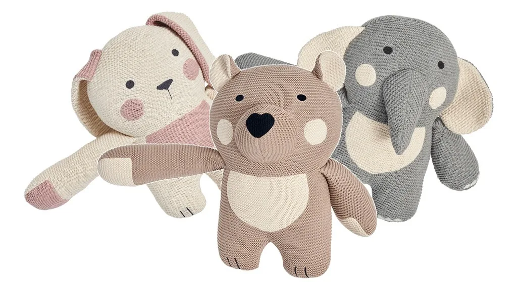 Ezek a Bearaby által készített súlyozott plüssállatok fenntartható módon készülnek, és a stressz csökkentésére tervezték. A kollekcióban szerepel az Elli Elefánt, a Benji Medve, és a Remi Nyúl.
