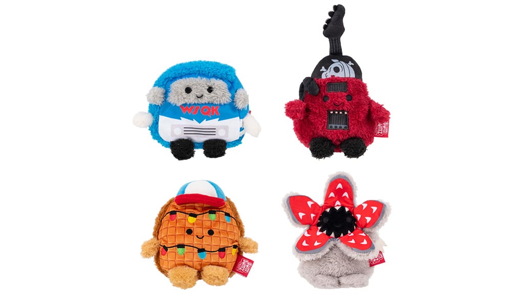 A Chibi stílus a plüssfigurákon is megjelenik, amelyekből hatféle változat közül választhatnak a 3 éves és idősebb gyerekek. Ezek a plüssök olyan népszerű karaktereket ábrázolnak, mint Eleven, Dustin, Lucas, Will, Steve és a Demogorgon. A Squishmallows és a BumBumz sorozat is csatlakozik a mókához, így mind a hősök, mind a gonosztevők puha, ölelhető változatban is elérhetők. A klasszikus Squishmallows karakter, Emily egy "Thinking Cap"-et visel, míg Dante egy "Hellfire" pólóban látható. Emellett külön is kapható Dustin és a Demogorgon plüssfigura. A BumBumz 4-es csomag (4,99 dollárért), amely elérhető az Amazonon, a Targetnél és a Walmartnál, a feje tetejére állított világ (Upside Down) puhább oldalát mutatja be: egy karácsonyi fényekbe öltöztetett gofri, egy Demogorgon, egy vintage kisbusz és Eddie gitárja is megtalálható benne. Ezek a plüssök nemcsak játékra, hanem gyűjtésre is kiválóak, és minden rajongó számára örömet szereznek.