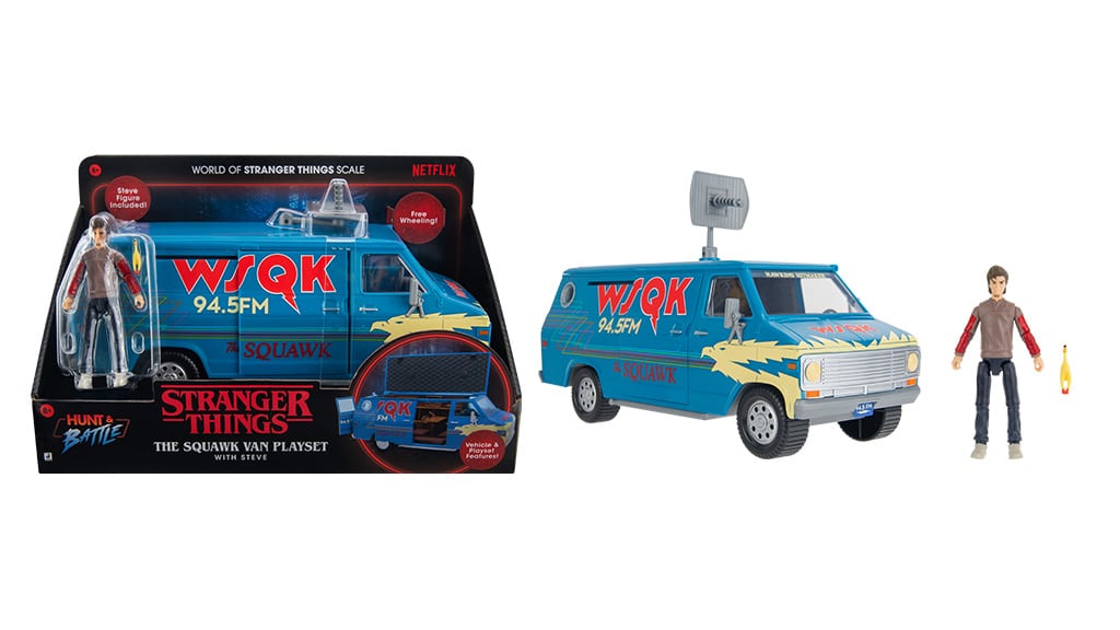 A Stranger Things WSQK Furgon tartalmaz egy 8 hüvelykes WSQK furgont és egy 4 hüvelykes Steve Harrington figurát, valamint hat kiegészítőt. Teljes mértékben kompatibilis minden 4 hüvelykes akciófigurával. A furgon fény- és hanghatásokkal rendelkezik, továbbá visszahúzható tetővel, nyitható ajtókkal és csúsztatható munkapaddal van felszerelve. Ez a játékszett tökéletes választás minden Stranger Things rajongó számára, hiszen lehetőséget ad a sorozat ikonikus jeleneteinek újrajátszására, miközben a részletgazdag kidolgozás és a különleges funkciók még izgalmasabbá teszik a játékélményt.