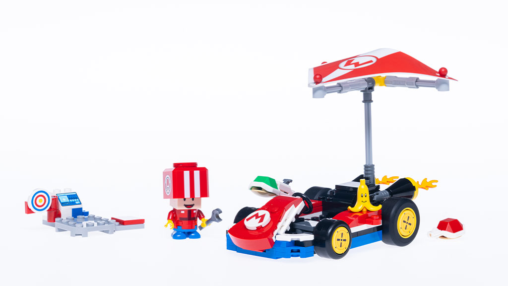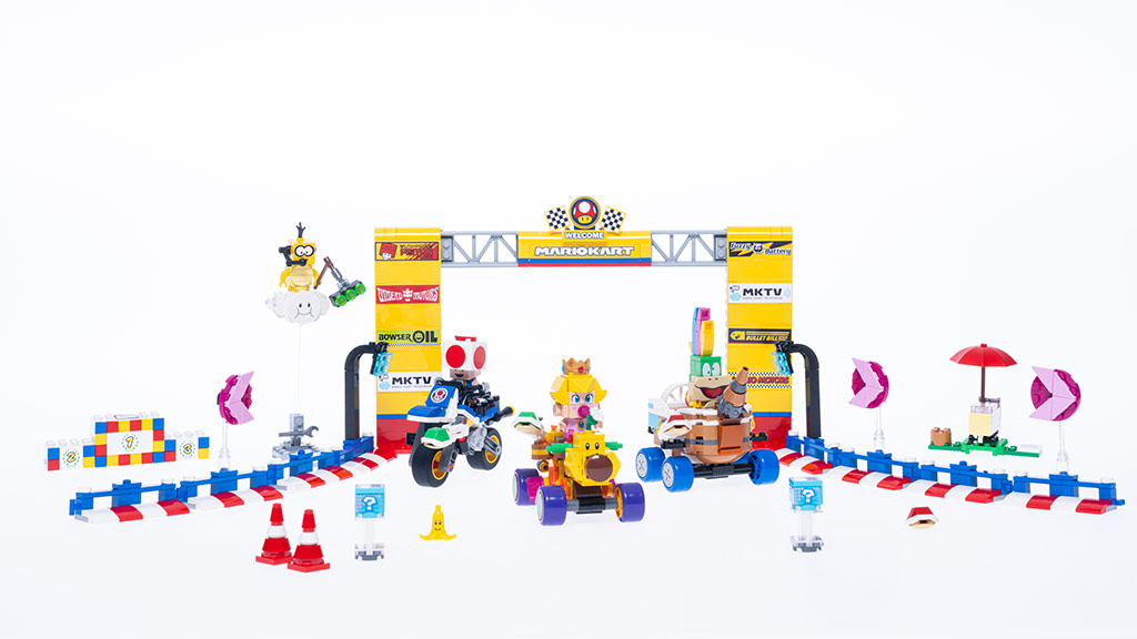 A gyerekek újraalkothatják a Mario Kart játékokat a valóságban a LEGO Super Mario: Mario Kart Baby Mario vs. Baby Luigi készlettel, amely 321 darabból áll és Baby Mario-t és Baby Luigi-t tartalmazza a gokartjaikban, amint a Balloon Battle játékot játsszák. Emellett elérhető a LEGO Super Mario: Mario Kart Baby Peach & Grand Prix készlet is, amely 823 darabból áll és Baby Peach-et, Toad-ot és Lemmy-t tartalmazza, amint áthaladnak a célvonalon a gokartjaikkal.