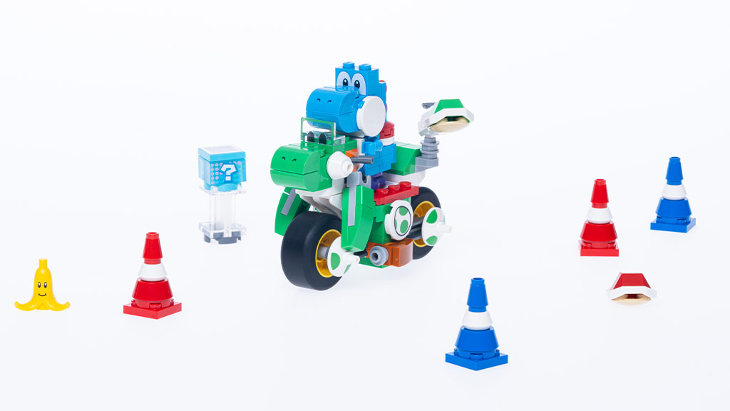 Hat Mario Kart készlet van, amelyeket idősebb általános iskolások és kiskamaszok számára terveztek. A LEGO Super Mario: Mario Kart Yoshi Bike 133 darabból áll, és egy kék Yoshit tartalmaz egy zöld Yoshi biciklin, valamint akadályokat, amelyeken versenyezhetnek. A gyerekek versenyezhetnek a Yoshi Bike mellett a LEGO Super Mario: Mario Kart Donkey Kong & DK Jumbo készlettel, amely 387 darabból áll, és Donkey Kongot tartalmaz a hordó kartjában, valamint egy banán célpontot.