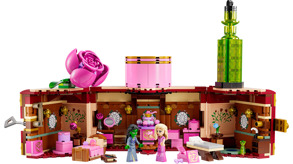 Bár Glinda és Elphaba nem feltétlenül legjobb barátok az elején, a gyerekek biztosan legjobb barátok lesznek a LEGO Wicked Glinda & Elphaba Kollégiumi Szoba készlettel, amely 740 darabból áll, és egy bőröndöt alkot, amely kinyitva felfedi a lányok kollégiumi szobáját. Ez a készlet egy QR kóddal érkezik, amely egy zenei videót játszik le.