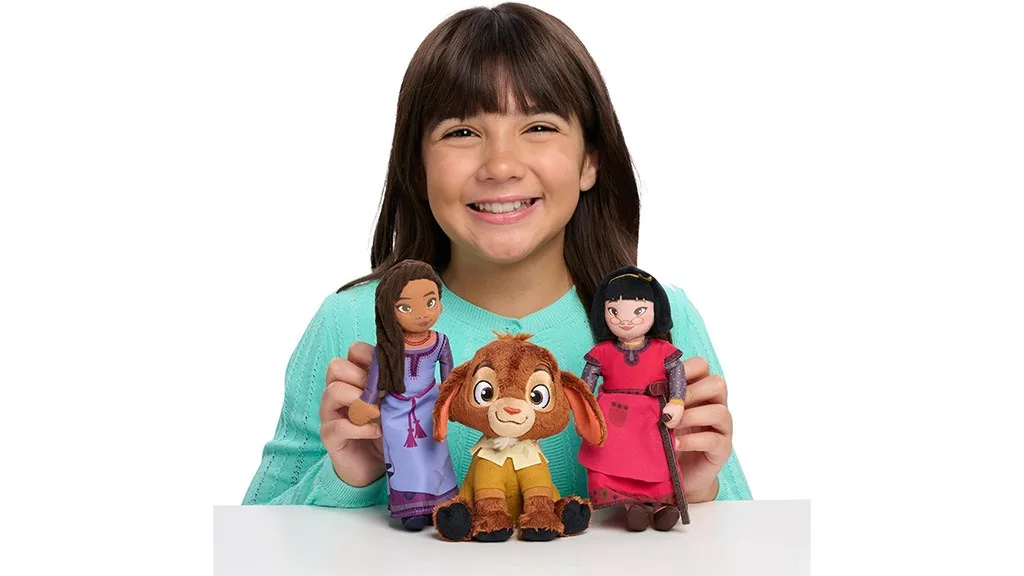 A gyűjtemény számos teljes méretű plüss játékot is tartalmaz, amelyekkel a gyerekek interakcióba léphetnek és képzeletük szerint játszhatnak. A "Walk ‘N Talk Valentino" plüss játék sétál, beszél és elájul, mint egy valódi kecske. A gyerekek csak megnyomják Valentino oldalát, hogy aktiválják a sétálását, bégetését és a filmből származó különböző mondatait! Egy nyugodtabb ölelésért ott van a "Hug & Wish Star" plüss, amely lágyan világít, ha megnyomják a kezét! Asha, Dahlia és Valentina is elérhetőek beszélő plüss formájában! Ezek a plüss játékok a filmből származó különböző mondatokat mondanak, ha megnyomják a hasukat.