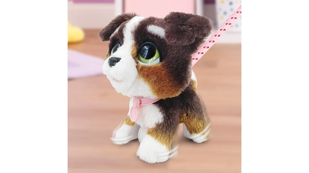 Készülj fel a szórakozásra és sétára! Egy gyengéd lökéssel a gyerekek vihetik ezt az aranyos kutyust sétálni a ház körül. A 20cm-es játék ugat, nyüszít, és más cuki kutyahangokat ad ki.