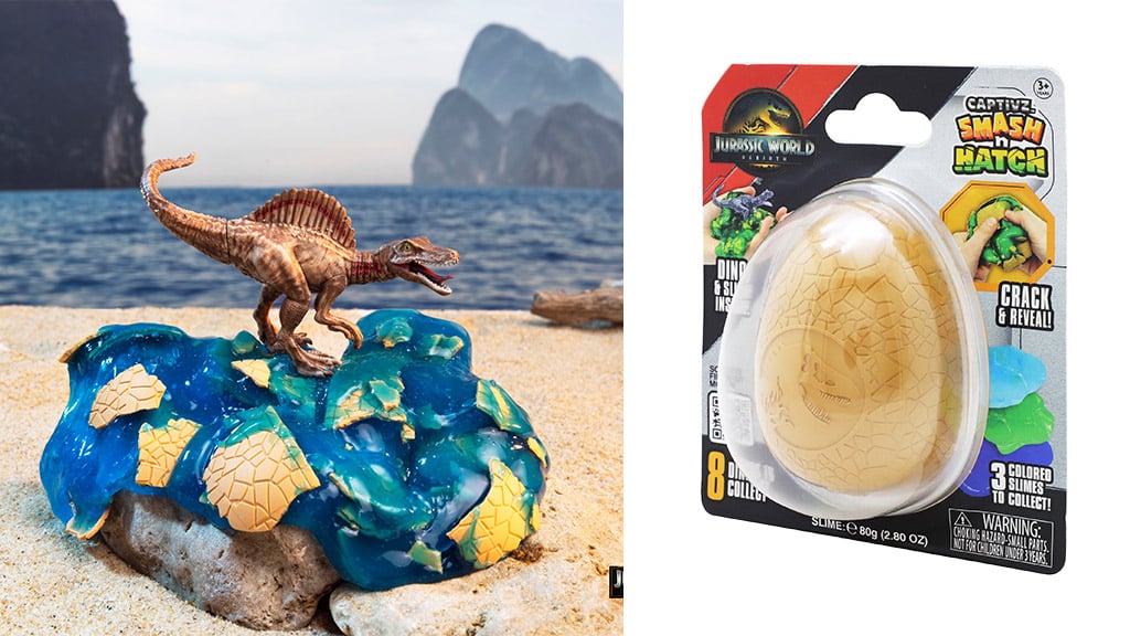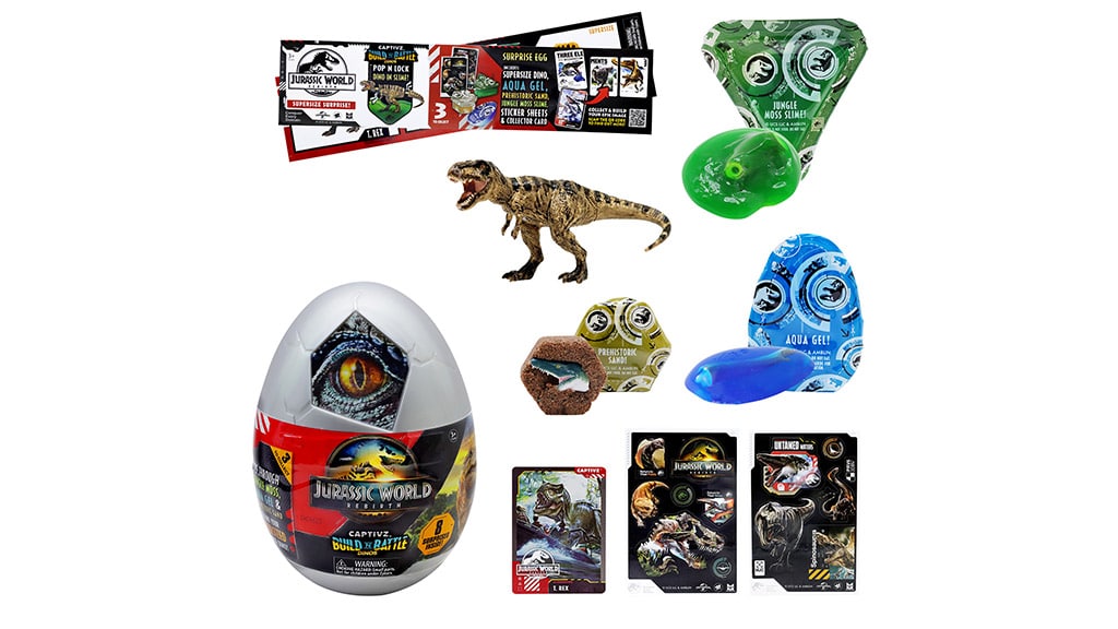 Mi volt előbb, a dinoszaurusz vagy a tojás? A gyerekek most végre maguk is felfedezhetik a választ a feltörhető rejtélytojásokkal! A Slime Tojás felnyitásakor egy a 13 dinoszaurusz közül, egy gyűjtőkártya és egy adag nyúlós slime várja őket. A Meglepetés Tojás még nagyobb szörnyet rejt, valamint három ragacsos, nyúlós anyagot is tartalmaz. A gyerekek a Smash and Hatch Tojást is összetörhetik – miután előkerült a dinoszaurusz, a maradék tojást bele lehet nyomni a trutyiba, ami igazán különleges, kielégítő érzést nyújt. Több tucat dínó vár összegyűjtésre, így a gyerekek órákon át izgalmas kincskeresésben vehetnek részt!