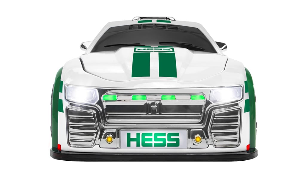 A fehér versenyautó 42 ragyogóan világító LED-fénnyel, szabadon gördülő kerekekkel, valamint négy, a csomagtartóra szerelt gombbal rendelkezik, amelyek élethű versenyhangokat szólaltatnak meg. Hess forrás alapján.