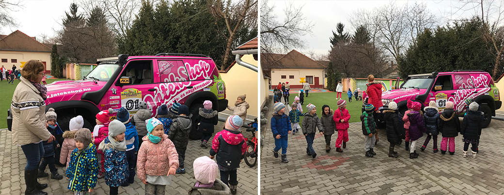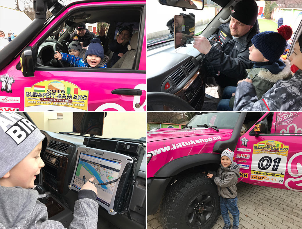 A csapat tagjainak pihenésre azonban még a start előtt néhány nappal sem maradt ideje, hiszen ígéretüknek eleget téve a váci evangélikus óvodába látogattak el, hogy a legnagyobb rajongóikkal találkozzanak a start előtt. Az óvodában játszó csöppségek már messziről meghallották a versenyautó morajló motorhangját és azonnal az ablakra tapadtak… Miután a csapat leparkolt és biztonságossá tette az autó elektronikai berendezéseit és műszerfalát a gyerekek közelebbről is szemügyre vehették a hatalmas méreteket öltő rózsaszín versenyterepjárót.