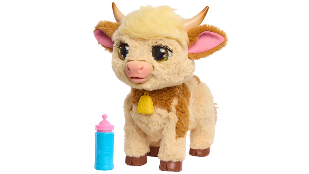 A családok mostantól örökbe fogadhatják a Just Play legújabb tagját, Maggie-t, az Etethető és Követhető Tehenet, aki egy széles szemű és mindig éhes skót felföldi tehén. Ez a 23 centiméteres játék több mint 50 különböző hangot és reakciót tud, így a játék minden alkalommal egy kicsit más élményt nyújt. A gyerekek a mellékelt játék cumisüveggel megetethetik Maggie-t, majd az üveget elfordítva óvatosan vezethetik őt maguk után. Maggie sétál, csóválja a farkát, pislog, böfög és még sok más aranyos dolgot csinál. Emellett egy apró csengő és nyakörv is díszíti, ami még különlegesebbé teszi ezt a bájos játékot. Ez a játék nemcsak szórakoztató, hanem segíti a gyermekek képzelőerejének és gondoskodó készségének fejlődését is.