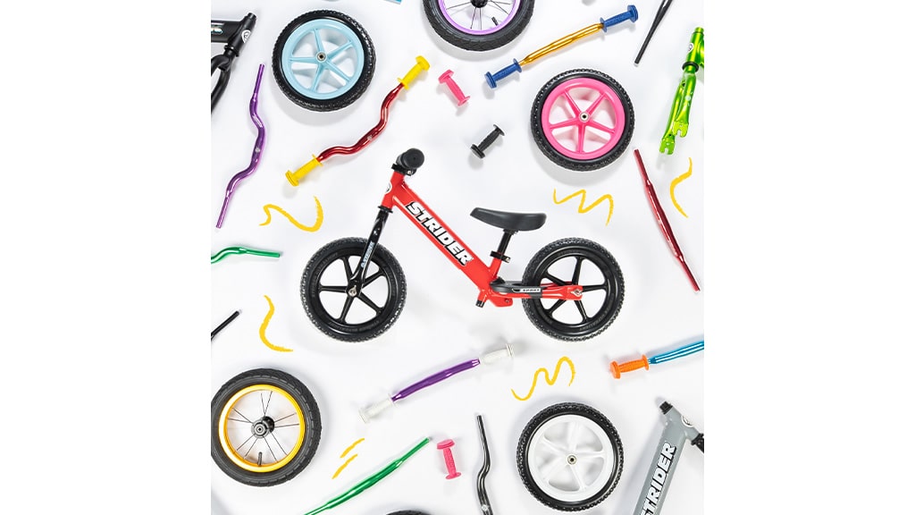 Készítsd el a saját változatodat a Strider 12 Sport Bike vagy a Strider 12 Pro Bike modellből, kizárólag a weboldalon elérhető, egyedi színekben és vidám kiegészítőkkel! Testre szabhatod a váz színét, a kerék stílusát és színét, a kormány stílusát és színét, valamint különféle kiegészítőket is hozzáadhatsz, hogy igazán egyedi legyen a bringád. Fedezd fel a lehetőségeket, és alkosd meg a gyermeked számára tökéletes futóbiciklit!