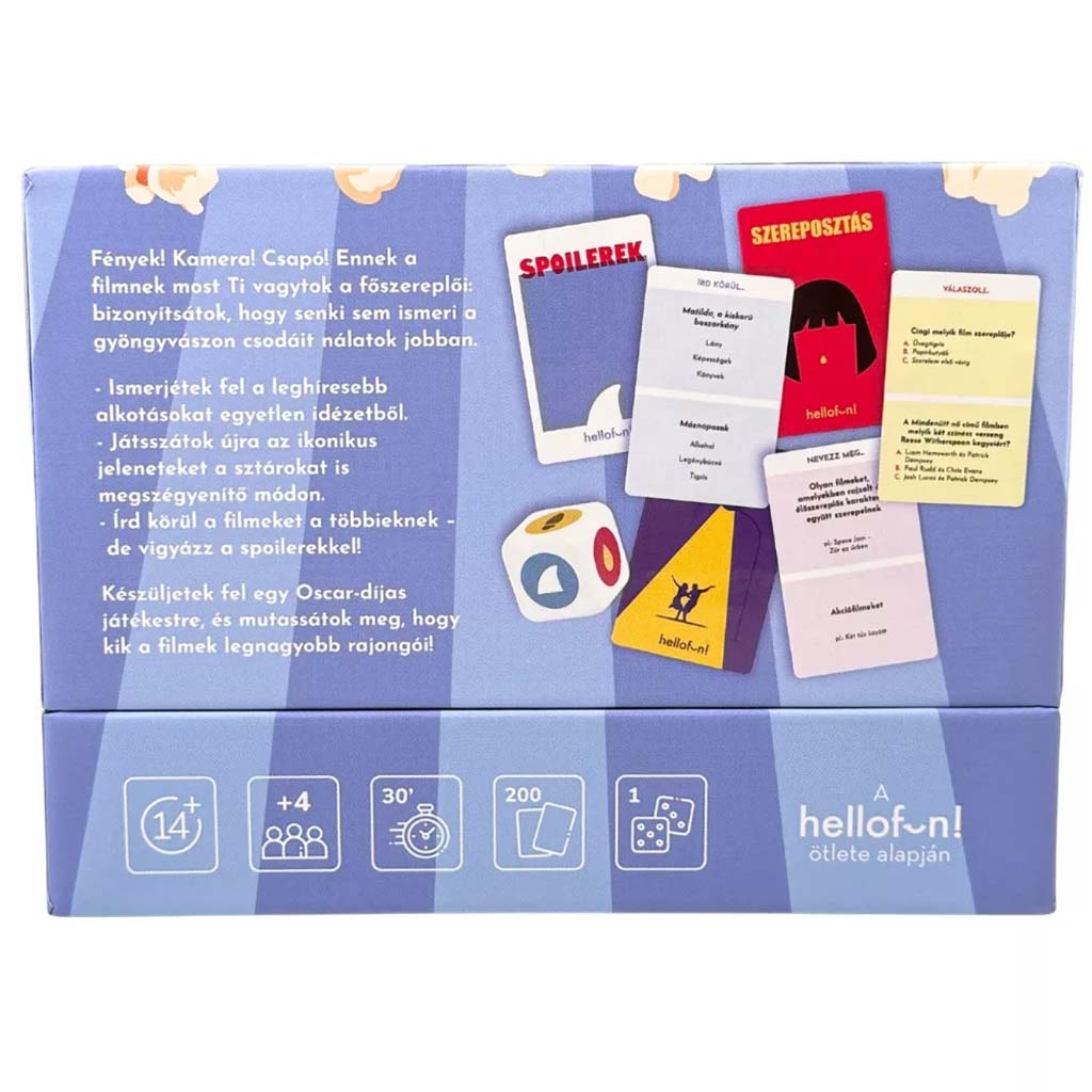 A feladatok között találkoztok filmzenékkel is, amelyeket dúdolva, fütyülve vagy akár elmutogatva kell kitaláltatni, de olyan kihívás is vár rátok, ahol adott témához kell filmeket sorolnotok. Sőt, a szereposztások világában is próbára tehetitek magatokat! A játék egy igazi filmes élményt ad, ahol nemcsak a tudás számít, hanem a kreativitás, a humor és az improvizáció is.