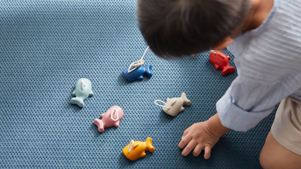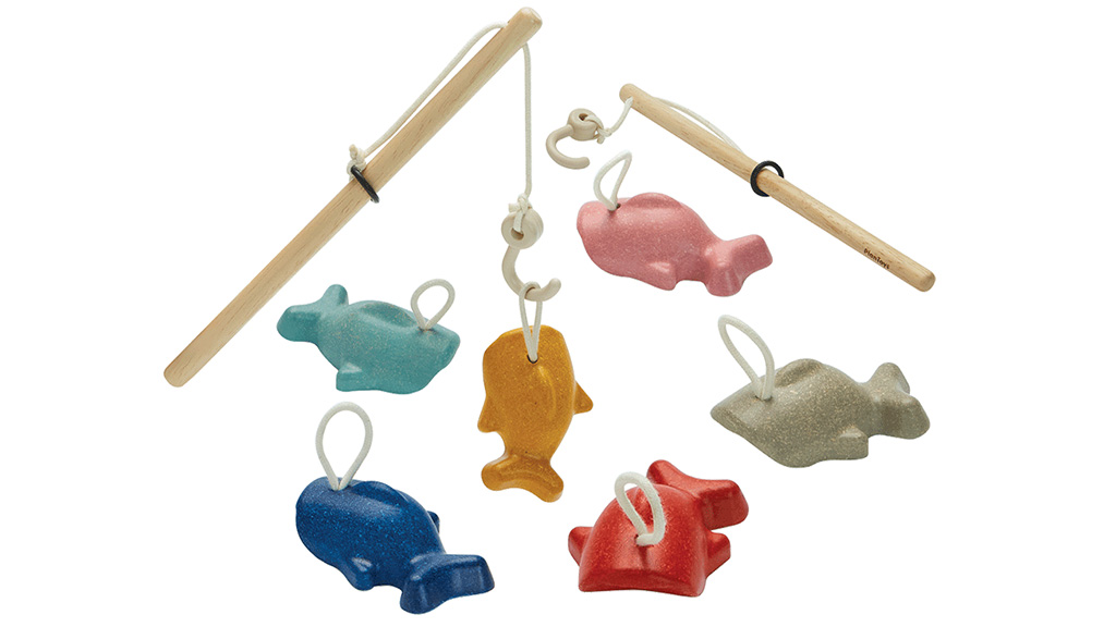 A készlet hat színes halat és két fa horgászbotot tartalmaz. A botok különböző játékszintekhez állíthatók. Ez a fenntartható készlet kiválóan alkalmas a kéz-szem koordináció, a koncentráció és a finommotoros készségek fejlesztésére.