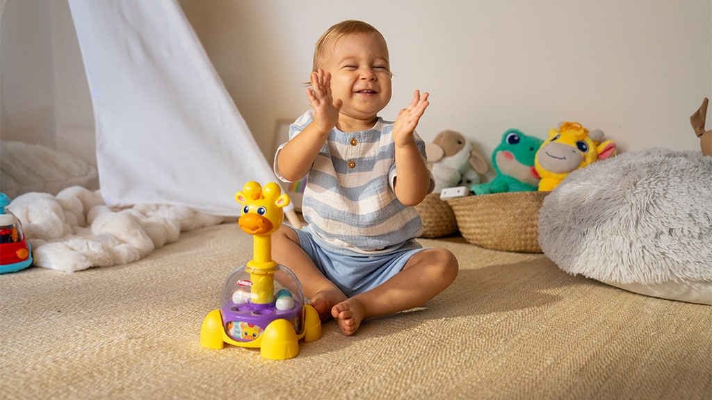 A legjobb játékok azok, amelyeket a gyerekek működtetnek. A Sit ‘n Spin segítségével a kicsik izgalmas pörgős élményben részesülhetnek: csak ráülnek az alapra, és a kereket forgatva máris kezdődhet a móka. A Tumble Top Zsiráf játékban a totyogók színes golyókat láthatnak pörögni és pattogni, ha lenyomják a zsiráf fejét. Ezek a játékok nemcsak szórakoztatóak, hanem fejlesztik a mozgáskoordinációt, a kézügyességet és a kreativitást is, miközben a gyerekek önfeledten játszanak és tanulnak.