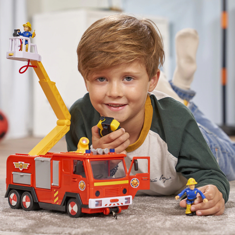 Minden kis srác ismeri a Sam a tűzoltó mesefilmet, így a mesékből jól ismert Jupiter névre keresztelt tűzoltóautó egészen biztos, hogy osztatlan sikert fog aratni. A hatalmas tűzoltóautón be lehet kapcsolni a hang és fény hatásokat, hogy mihamarabb odaérjenek a bajba jutott emberekhez. Az autó valódi tűzoltásra is képes, hiszen a pumpaszerkezetnek köszönhetően képes vizet spriccelni. Amint sikerült a tüzet eloltani, a csörlő és az emelődaru is bevethető, hogy minden helyzetben a legjobb teljesítményt nyújtsa. A járgány mellé két tűzoltófigura is tartozik, így a gyerekek eljátszhatják a mese legjobb részeit vagy új kalandokat is kitalálhatnak Sam és Penny számára.