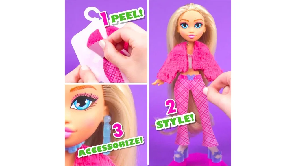Minden baba és divat szett hét újrahasználható ragasztós matricás ruhával érkezik, amelyeket a gyerekek összekeverhetnek és összehangolhatnak, hogy több mint 850 különböző megjelenést hozzanak létre. A 10 hüvelykes babák egyedi stílusokkal rendelkeznek, beleértve a Y2K Gurl, K-Pop Princess, Pop Punk Star, és Streetwear Queen stílusokat.