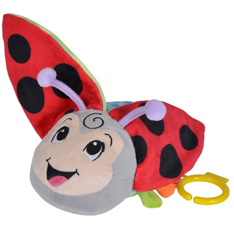 Ez a kedves katicabogár pihe-puha plüss anyagból készült és apró alkatrészeket nem tartalmaz, amelynek köszönhetően gyermeked akár már hat hónapos kortól használatba veheti. A különleges nyitható szárnyak belseje fóliával lett kiegészítve, amelynek köszönhetően tapintás és morzsolás hatására recsegős hangot ad ki amely könnyedén leköti gyermeked figyelmét. A katicabogár 17cm-es méretének és a ráerősített akasztónak köszönhetően akár a babakocsira vagy kiságyra erősítve is felhasználható.