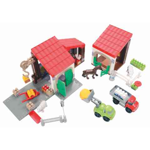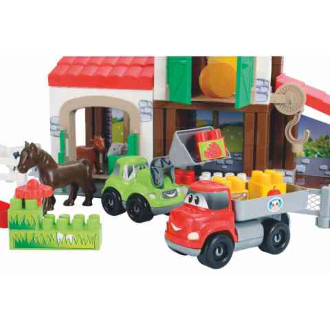 Most egy egész farmról kell gondoskodnod pont úgy, mint a való életben... A traktorral a teherautóra emelheted a takarmányt, melyet aztán elszállítasz az állataidnak. Ez a Farm játékszett számos módon variálható, így kedved szerint rendezheted el a különböző épületeket, állatokat és közlekedhetsz a vidám járművekkel is. A csigás emelővel a padlásra helyezheted a takarmányt és kordont építhetsz az olyan aranyos háziállatoknak, mint a ló, a bárány, a boci vagy a kecske.