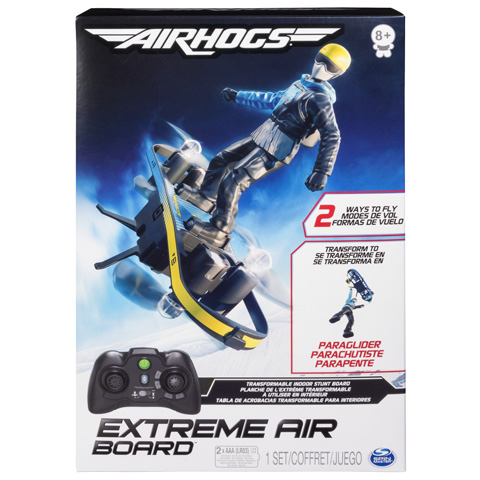 Győzd le a gravitációt az Air Hogs Extreme légdeszka segítségével, ami ráadásul kétféleképpen is repülhet! tedd próbára magad, , hogy milyen ügyesen maradsz meg a légdeszkán, vagy mennyire menne jól a siklóernyőzés! Csatold be az extrém sportolót és használja a távirányítót, hogy felröppenjen a levegőbe. A kaszkadőrgomb segítségével elképesztő hurkokat és spirálokat is meg lehet csinálni! A sebesség és a trükkök szerelmeseinek az Air Hogs légdeszkája elképesztő lehetőségeket kínál! Navigálj éles kanyarokba, repülj veszélyesen alacsonyan és zuhanj és emelkedj meredeken! Az Air Hogs nagyszerű választás minden kezdő és haladó quadrocopter pilótának.