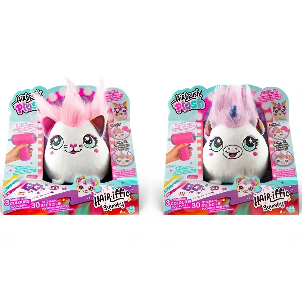 Engedd szabadjára a kreativitást a szuperpuha Airbrush Plush Hairiffic Squishy plüssökkel! Ezek az édes kis lények – egy cica és egy unikornis – alig várják, hogy színt és egyedi stílust kapjanak tőletek. A játék lényege, hogy a gyerekek saját kezűleg dekorálhatják, színezhetik, majd újra és újra átalakíthatják a kis plüss pajtásokat egy elektromos airbrush festékszóró segítségével.