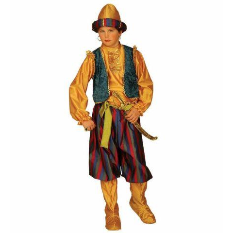 Öltsd magadra egy korabeli arab fiú klasszikus viseletét és nyerd meg vele a jelmezversenyt. A jellegzetes fejfedő mellé jár egy buggyos ing, amire egy mellény kerül. A csíkos mintázatú buggyos nadrágot egy selyem övvel köthetjük meg, és a lábszárunkra és a cipőnkre egy borító szövet kerül, ami összhangban van a felsővel. A jelmez már kész is, már csak egy szablya kell kiegészítőnek. Legyen Halloween vagy Farsang, a Widmann kiváló minőségű jelmezei és kiegészítői számtalan lehetőséget kínálnak.