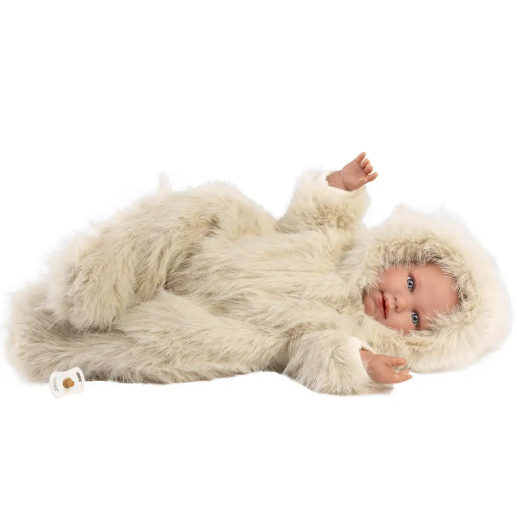 Alicia egy gyönyörű, 45 cm-es síró baba, aki igazán különleges élményt nyújt a gyerekeknek – nemcsak kinézetében élethű, hanem viselkedésében is. A baba puha, bundás overált visel, ami ölelgetésre csábít, és még meghittebbé teszi a közös játékot. Arckifejezése részletgazdag, szemei kifejezőek, mintha valóban kapcsolatot teremtene a kis gazdájával.