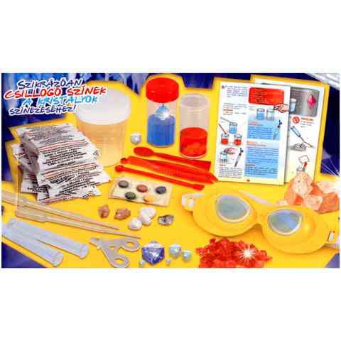 Alkoss valódi kristályokat ezzel a fantasztikus szettel! Csináld meg magadnak a csillogó kristályokat és színezd őket. A készletben minden szükséges kiegészítőt és szerszámot megtalálsz hozzá. Üljetek le a szüleiddel vagy az osztálytársaiddal és fedezzétek fel ezt a csodás tudományos játékot érdekes kísérletek során.