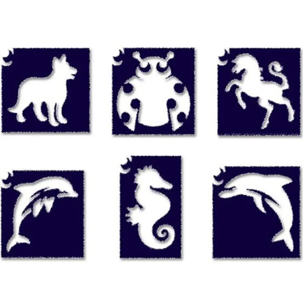 Ha kedveled az állatokat az apró csikóhalaktól a delfineken keresztül a kutyákig, akkor ezeket a csillámtetoválás sablonokat imádni fogod, hiszen a segítségükkel könnyedén készíthetsz magadnak egy-egy apró és divatos csillámtetoválást. A TyToo sablon készleteinek köszönhetően a gyerekek a legváltozatosabb minták alapján készíthetnek maguknak csillámtetoválást, hiszen a sablont feltéve, csak át kell kenni azt ragasztóval, és megszórni a megfelelő színű csillámporral, és a sablon mintája máris a bőrt díszíti.
