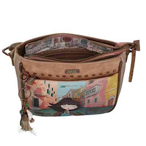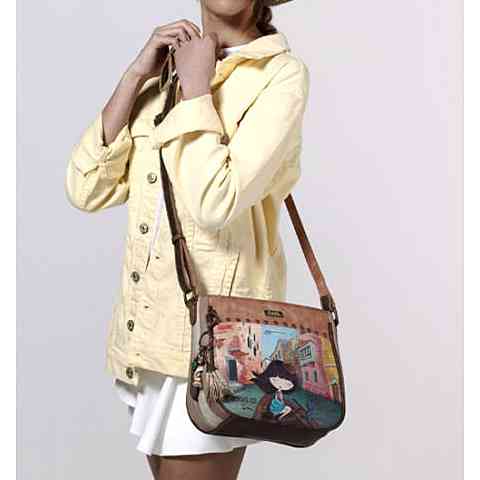 Különleges formájú oldaltáskád remekül kiegészíti megjelenésed, mely nem csak mutatós, hanem egyben rendkívül praktikus eleme is lesz külsődnek. Az Anekke spanyol karakterrel készített minta a Venice dizájnnal kiegészítve igazán mutatós külsőt ad az oldaltáskának, melyben sok holmid elfér majd. Cipzáras zsebekkel és rekeszekkel készült, így a rendszerezést segítő elemekkel kényelmesen használható. A táska alul széles, felül elvékonyodó kialakítású, tetején cipzárral zárható.