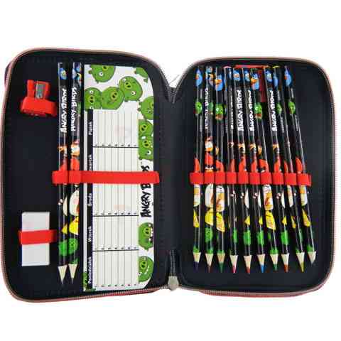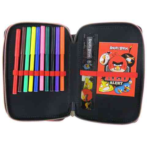 Az iskolához elengedhetetlen egy jó minőségű anyagból készült tolltartót beszerezni, amely védi és különválasztja az írószereket egymástól. Az Angry Birds emeletes, töltött tolltartóján a mérges, mégis mókás madarak grafikája kap helyet, ami a cipzár lehúzóján is visszaköszön. A kétkamrás tolltartóban színes ceruzák, filctollak, vonalzó, radír és HB ceruzák is találhatóak, melyhez faragót is csomagoltak a tervezők.