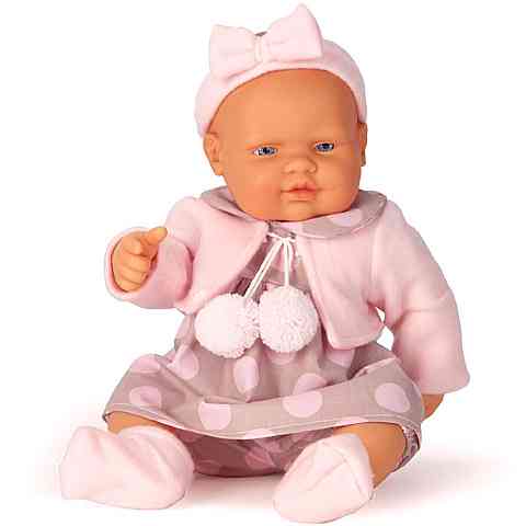 Rendkívül szépen kidolgozott, kiváló minőségű ruhába bújtatott babájukkal remek játékba kezdhetnek a kicsik, hiszen nem csak hogy mutatós a játékbaba, hanem karjai és lábai is mozgathatóak a jobb játékélményért. A rózsaszín ruha igazán elegáns, kis kabátját bojtok díszítik. A puha anyagból készült baba nem okoz sérülést a kicsiknek, mozgathatósága miatt lefektethető aludni vagy akár babakocsiba ültethető.