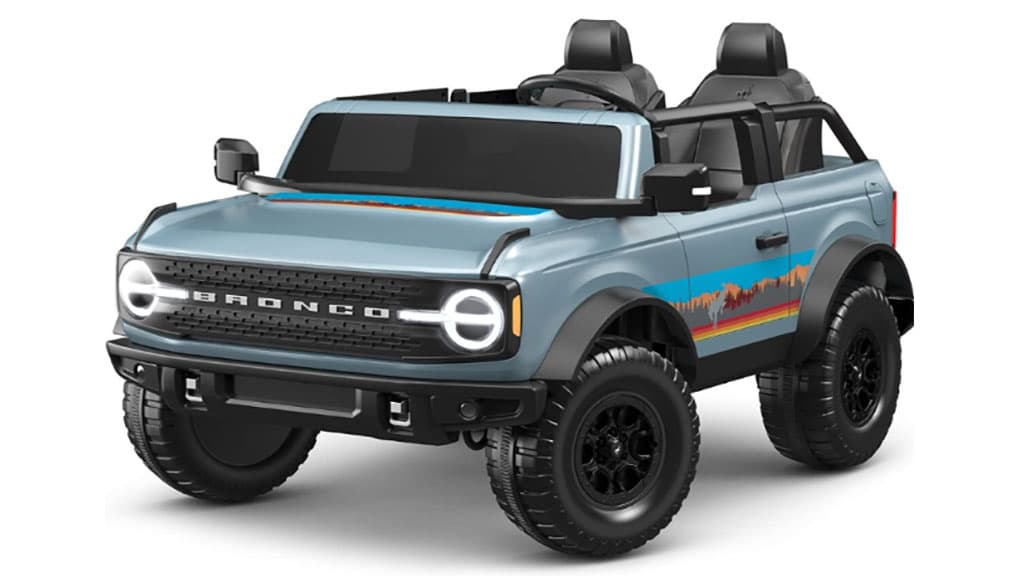 A Flybar Kid Trax Bronco Mountain Escape lehetővé teszi, hogy a gyerekek igazi vezetési élményt éljenek át akár a saját kocsibeállótokban is. Ez az akkumulátoros kisautó levehető ajtókkal, LED világítással és hangeffektekkel (duda és motorhang) teszi még izgalmasabbá a játékot. A jármű maximális sebessége 8 km/h, így biztonságos, de mégis élvezetes tempót kínál. Előre- és hátrameneti sebességfokozatokkal, valamint Power Trax gumírozott tapadású kerekekkel van felszerelve, hogy minden terepen stabilan guruljon. A gyerekek kedvenc zenéiket is hallgathatják vezetés közben, így a játék még szórakoztatóbbá válik. Ez a jármű tökéletes választás a kalandvágyó gyerekek számára, akik szeretnék felfedezni a környéket és átélni a vezetés örömét.