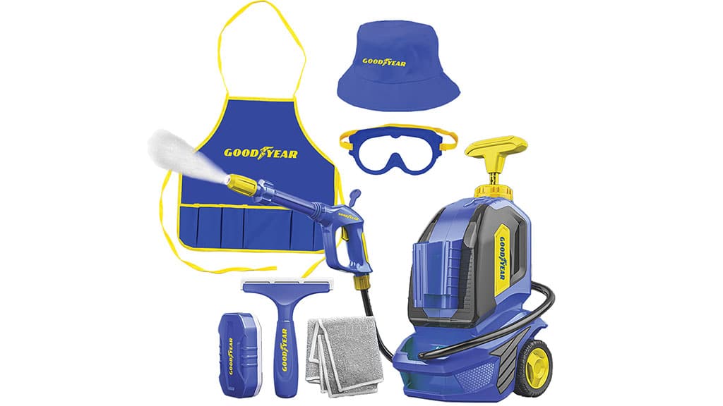 Gyerekek saját játékautóikat, járdákat és még sok mást is megtisztíthatnak ezzel a 7 darabos szerepjáték készlettel. A csomag tartalmaz egy víznyomásos tisztító eszközt, védőszemüveget, valamint egy Goodyear márkájú kötényt és sapkát. Ez a készlet nemcsak szórakoztató, hanem fejleszti a kreativitást és a finommotorikus készségeket is, miközben a gyerekek játékosan tanulhatnak a tisztaságról és a felelősségről.