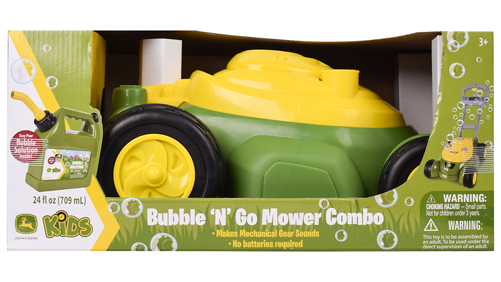 A zöld-sárga fűnyíró buborékokat és fogaskerék-hangokat ad ki, amikor a gyerekek tologatják. Tartozik hozzá egy buborékoldatot tartalmazó benzines kanna is, amely még izgalmasabbá teszi a szerepjátékot. Ez a játék fejleszti a képzelőerőt, és órákon át tartó szórakozást nyújt a kicsiknek, miközben úgy érezhetik, hogy ők is segítenek a kertben.