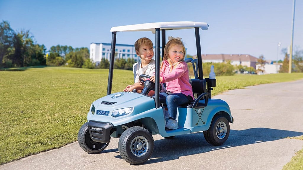 Ez a járgány tökéletes választás a nyári szórakozáshoz. Akár két gyermek is használhatja egyszerre, és akár 8 km/órás sebességgel is száguldhatnak vele, hiszen a jármű golfkocsi stílusban készült. A csomag tartalmaz golfütőket, labdákat, egy feltekerhető szőnyeget, valamint egy zászlót lyukkal, így a gyerekek valódi golfélményt élhetnek át. Ez a játék nemcsak szórakoztató, hanem fejleszti a mozgáskoordinációt és a csapatmunkát is, miközben a szabadban töltenek időt.