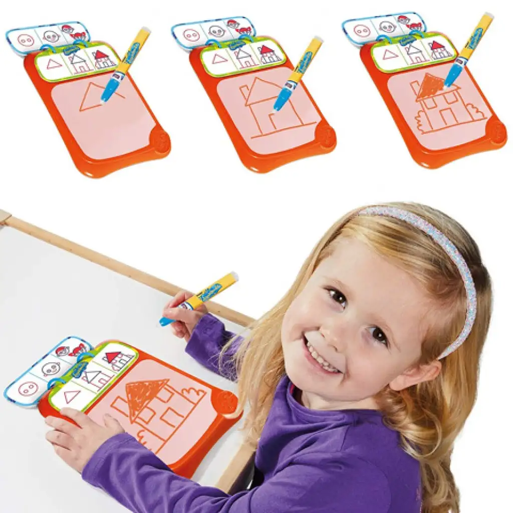 Az Aquadoodle Pro egy nagyon szuper rajzoló suli, ami a gyerekek egyik kedvenc kreatív játéka lesz, hiszen nem csak firkálhatnak a táblára, hanem segít a rajzolás tanulásában is. A kis tábla hússzor tizennégy centis méretével éppen megfelel a gyerekeknek, ráadásul a a vastag kialakítású toll kényelmes fogást tesz lehetővé a gyerekek számára. A tábla tetején egy több oldalas kis útmutató található, ami segít a különféle rajzok elkészítésének megtanulásában.