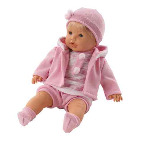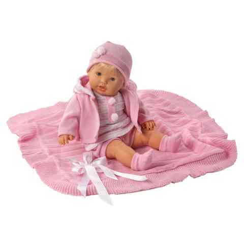 Ez a játékbaba felébreszit a gyermekben a gondoskodás iránti vágyat, mert ránézésre egy csecsemő élethű mása. A baba öltöztethető, ruházata könnyen tisztán tartható. Öltözékének színvilága rózsaszín. A baba felsőjének rózsaszín-fehér csíkos mintája visszaköszön a kapucnis kardigánjának kapucniján, így a baba ruházatának összhatása vidámságot sugároz. Ruházatához hozzá tartozik még egy buggyos rövidnadrág, egy pom-pommal díszített sapka és zokni. A játék tartozéka egy szintén rózsaszínű, fehér szatén szalaggal díszített pléd, ami a ringatás élményét komfortosabbá teszi.