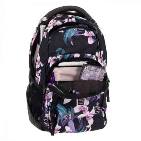 Ez a csodálatos Botanic Orchid iskolatáska kicsik és nagyok számára egyaránt remek választás. A táska minőségi anyagokból, erős varrással készül. A táska négy cipzáros zsebbel rendelkezik, melyekbe remekül szortírozhatóak az iskolaszerek. A táska súlya mindössze egy kilogramm, viszont 12kg-ig terhelhető. Az oldalzsebekbe kulacsot, kulcsokat vagy egyéb tárgyakat is elhelyezhetünk.