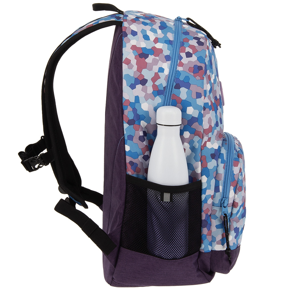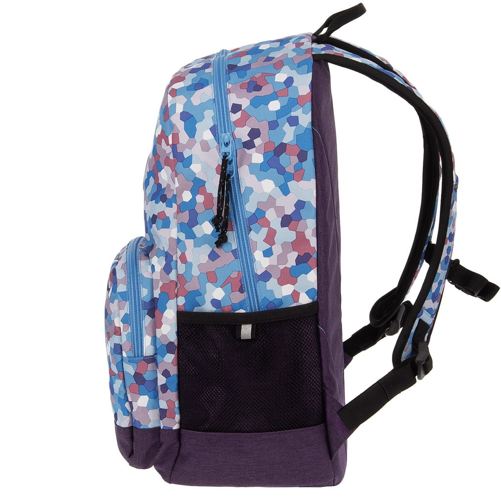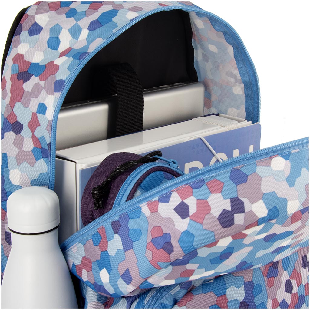 Az Ars Una Caleidoscope Blue AU-14 hátizsák tökéletes választás, ha egy igazán egyedi megjelenésű, mégis praktikus iskolatáskát keresel gyermeked számára 4. osztálytól. A kék árnyalatokból álló, mozaikszerű mintázat modern és vidám stílust kölcsönöz, így garantáltan kitűnik a tömegből. A hátizsák ergonomikus kialakításának köszönhetően kényelmes viselet a mindennapok során: megerősített, puha vállpántjai állíthatók, az összekapcsolható mellkaspánt pedig segít a helyes tartásban és a súly egyenletes elosztásában.